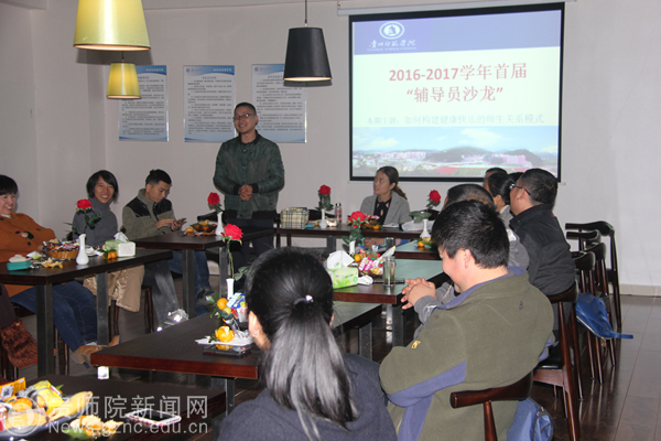 本网讯 为进一步加强辅导员之间的工作交流,不断提高队伍的工作能力和业务水平,促进pp电子辅导员队伍向专业化方向、职业化方向发展,11月14日,pp电子在地理与旅游学院西餐厅实训室内开展了2016-2017学年度首次“辅导员沙龙”活动,由艺术学院专职辅导员谭娇艳主持,主题为“如何构建健康快乐的师生关系模式”。学工部领导出席本次活动。