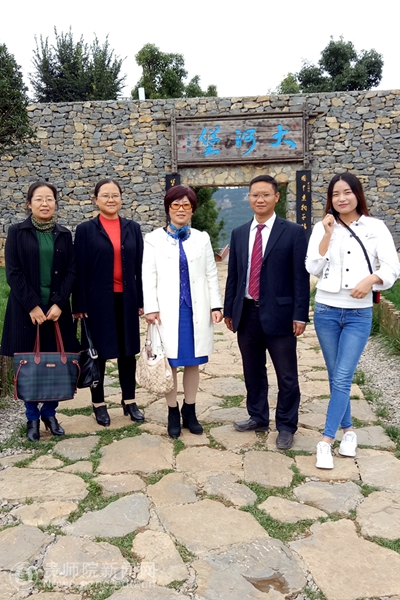 令狐彩桃听取了安毅老师对大河镇情况介绍和工作汇报后参观了大河堡花卉景区,大地印象农业观光园,凉都休闲农庄,凉都国学馆(中国农耕文化历史博览园),以及大黑山万国观光大道等景点以及沿线产业布局。pp电子传媒与设计学院14级市场营销专业学生卢青青、刘叶子,在大河堡景区为校领导作现场解说和导游。她们两位是今年到大河的实习学生,工作干得很好,很开心。解说得很棒,得到了高度表扬。