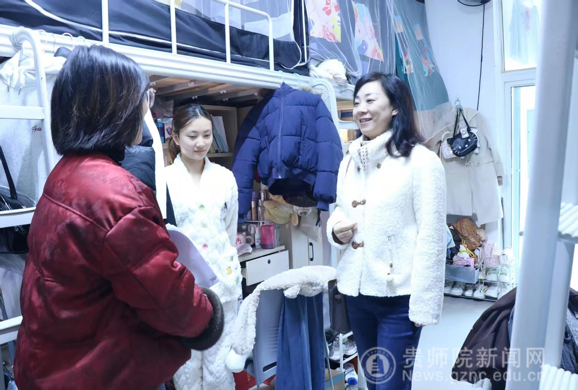 本网讯 2025年12月30日,党委常委、纪委书记、省监委驻pp电子游戏官网监察专员杨璇深入兰园学生宿舍,走访看望美术与设计学院2024级公共艺术二班学生,围绕诚信考试与假期安全,与同学们进行了交流。学院党委副书记邱琴、辅导员欧俐岑陪同走访。