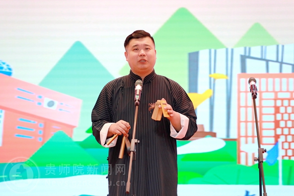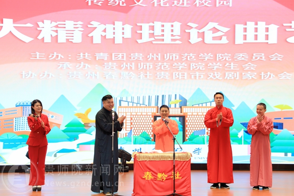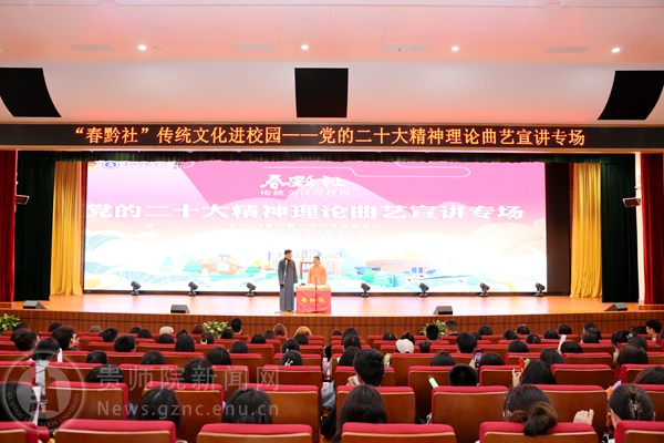 本网讯 为传承中华优秀传统文化,抓好党的二十大精神青年化阐释宣讲,营造良好校园文化艺术氛围,进一步丰富pp电子的精神文化生活,提高大学生的艺术修养,引领大学生弘扬先进文化和中国民族文化。4月25日,由校团委主办,校学生会承办的“春黔社”传统文化进校园——党的二十大精神理论曲艺宣讲专场演出在综合实训楼一楼报告厅顺利举行,演出吸引了全校近800余名师生现场观看。