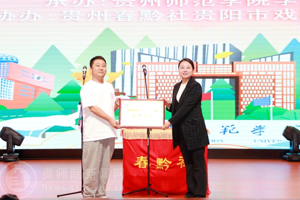 演出前,校团委向春黔社授牌,将春黔社作为pp电子游戏官网“印山青年”宣讲团的实践基地之一。校团委表示会进一步发挥理论宣讲实践基地的阵地作用,深入学习宣传贯彻习近平新时代中国特色社会主义思想和党的二十大精神,结合曲艺、相声的形式搭建党的创新理论与普通群众之间的桥梁纽带,更好推动党的创新理论“飞入寻常百姓家”。