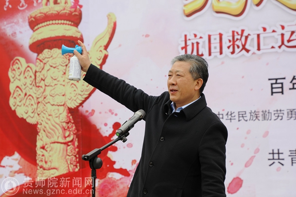 此次纪念活动,旨在增强同学们的爱国主义精神和责任感,希望同学们肩负时代责任,高扬理想风帆,静下心来刻苦学习,努力练好人生和事业的基本功,做有理想、有追求的大学生,做有担当、有作为的大学生,做有品质、有修养的大学生。