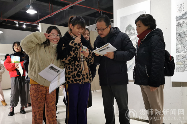 出席本次展览开幕式的领导和嘉宾有:贵州省文史研究馆党组成员、副馆长曾达,pp电子游戏官网党委委员、副校长邹晓青,贵州省文史研究馆特约研究员、画家杨亚杰先生及夫人徐桂荣女士,贵州省文史研究馆书画处处长陈光荣,美术与设计学院院长聂森、副院长路统宽、党委副书记赵玉等。开幕式由美术与设计学院党委书记石含洲主持,美术系全体老师和部分学生参与了此次活动。
