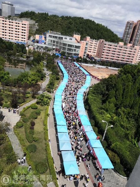 晨风拂过七点的鉴湖,映入眼帘的,是两长排浅蓝色的帐篷,各组织的工作人员有条不紊地进行活动场地的布置工作,致力展现组织风采,吸引新生们驻足报名。