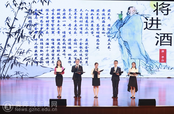 本网讯 9月20日,由贵州省教育工会和贵州省语委办主办、贵州师范大学承办的“我和我的祖国”教职工经典诵读展示活动在贵州师范大学花溪校区礼堂举行。本次活动旨在为了隆重庆祝新中国成立70周年,弘扬中华优秀传统文化,展示诵读精品和当代教师风采,增强教职工热爱祖国的真挚情感。各代表队以饱满的真挚情感,富有韵味的舞台形象和感染力,强烈的震撼着每一名观众的心,让经典诵读活动高潮迭起。
