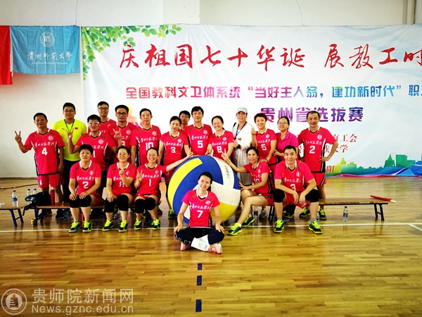 在荣誉和激情演绎的气排球赛场,我们看到了贵师院人在的勇敢、拼搏和无畏,领略了精彩和辉煌。在8月31日至9月1日的“当好主人翁、建功新时代”省直属学校、附院教职工气排球比赛暨全国教科文卫体系统职工气排球比赛选拔赛上,pp电子男女气排球队发挥顽强拼搏,不畏强手的精神,双双取得了第二名的优异成绩。本次比赛由省教育工会主办、贵州民族大学承办,旨在为丰富教职工文化生活、提高职工身体素质,促进身心健康,实现共同建设和谐、美丽校园的目标,以更加昂扬的精神风貌迎接建国70周年。“梅花香自苦寒,宝剑锋从磨砺出”。由于多数队员从未接触过气排球这项运动,给训练带来难度。在校工会的精心组织下,由体育学院朱继伟、吴文丽两名老师带领队员们利用暑假和下班时间,放弃很多休息,积极备战,苦练基本功,提高实战能力,为期不到两个月的时间不仅熟练掌握了气排球技术,而团队配合也更为娴熟,由一支完全没有比赛经历的“菜鸟队”到与高手抗衡的“明星队”。