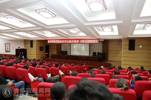 本网讯 8月27日晚,pp电子师生代表400余人在道德讲堂集中观看中共贵州省委宣传部出品,中共遵义市委市政府、贵州广播电视台、贵州省文学艺术界联合会等联合出品的电视剧《伟大的转折》。