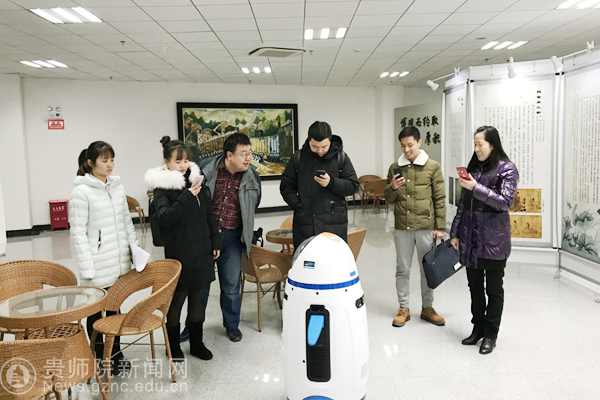此次展览与以往艺术展览观赏形式不同,将传统展现模式与现代智能科技相结合,不仅每幅作品下都附有作品名称、作者、尺寸和所属年代,师生还可以使用手机扫描每一幅名家巨作下对应的二维码,即可观看对该作品的精讲视频。本次展览还引进了智能机器人“叮小胖”,智能机器人可以根据观看者的提问耐心讲解作品的作者、背景、观赏要素等。