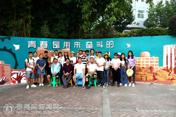 在接下来的两天里,同学们分工明确:有的负责构图,在墙体上勾勒出清晰的轮廓;有的负责调色,有的负责涂色,同学们拿起各式的画笔在墙体上细致涂刷,使得文化墙逐渐生动起来。经过三天不分昼夜的奋战,师生们互相配合,通力协作,精益求精,不断完善画面细节,最终圆满的完成了奋斗广场的壁画活动。