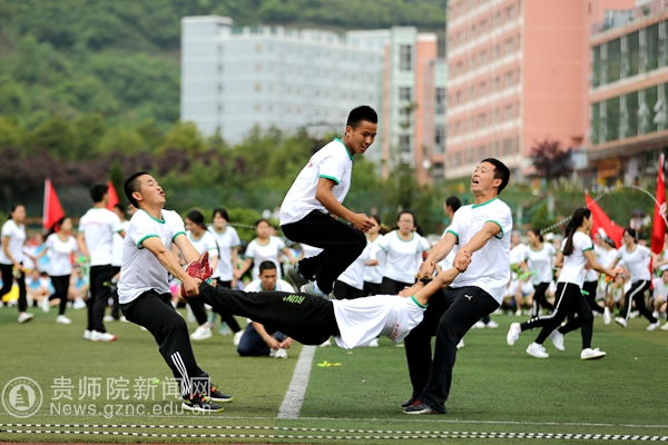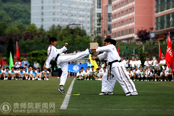 由李军卫老师带领的校跆拳道队大显身手。礼仪廉耻,跆拳一生!青春洋溢的跆拳舞揉和了跆拳道基本的攻防基础,体现了跆拳道习练者的激情与正气。年轻的校跆拳道队代表pp电子参加了2015年贵州省九运会竞技跆拳道各公斤级别的比赛项目,初次参赛的跆拳道队员们敢打敢拼,取得了一银一铜两个第五的好成绩。