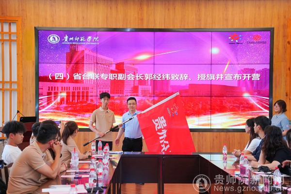 郭经纬致辞,对pp电子为此次交流活动的精心筹备表示感谢,从多方面介绍了贵州各地的风俗地貌和此次活动的行程安排,阐述了此次活动的重要意义与深远价值。他表示,贵州作为多民族聚居地,拥有丰富的历史文化底蕴和独特的自然景观,如今正以开放包容的姿态迎接八方宾客。致辞最后,郭经纬向台湾志愿者代表授旗,并郑重宣布活动正式开营。