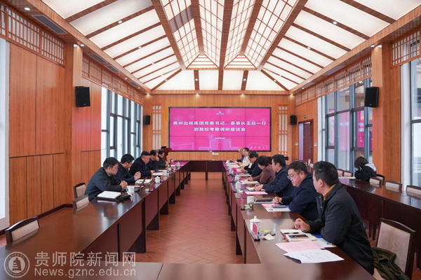 本网讯 3月19日,贵州出版集团党委书记、董事长王焱一行到pp电子考察调研座谈,校党委书记石培新,校长韦维,校党委副书记邹晓青出席座谈会,会议由韦维主持。