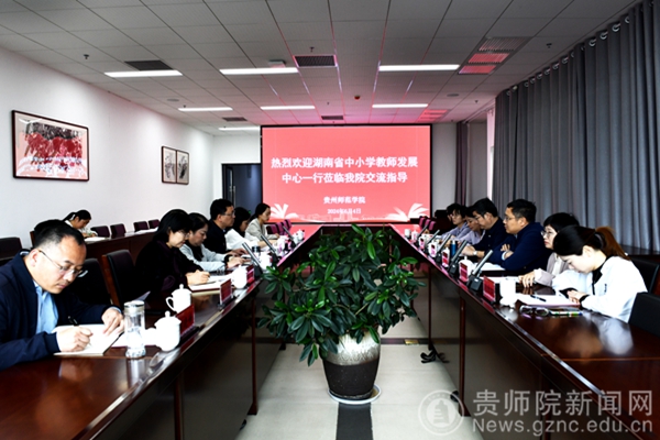 本网讯 6月4日上午,湖南省中小学教师发展中心党总支副书记、副主任左梦飞,培训管理科科长黄佑生,培训项目科科长陈娅等一行6人莅临pp电子进行交流调研。pp电子党委委员、副校长潘运,教师工作部部长王茜,继续教育学院直属党支部书记韦丹,副院长何荣及相关科室负责人参加座谈,座谈会由韦丹主持。