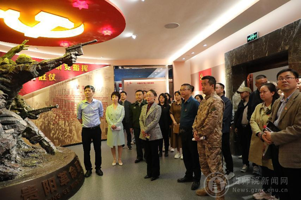 贵阳警备区动员处处长唐田陪同参观了贵阳革命军事展陈馆,pp电子游戏官网马克思主义学院、体育学院、音乐舞蹈学院、美术与设计学院党委班子成员、教师党支部教师党员代表参加了本次活动。