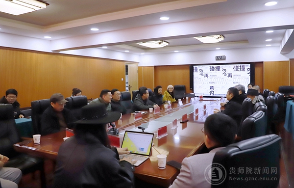展览开幕式后,参展艺术家和嘉宾来到美术与设计学院会议室,就高校艺术创作与教学的互动问题展开深入的研讨。河南工业大学黄向前介绍了郑州的艺术区和相关展览活动现状,就如何通过展览活动带动高校教师的艺术创作等问题展开探讨。郑州大学美术学院王国建就学院的办学定位、各绘画工作室教学情况、课程设置、研究生教学工作以及如何通过奖励机制激发教师科研创作积极性等问题展开探讨,华北水利水电大学艺术学院熊晓东就高校如何实现差异化发展等问题进行探讨。随后,贵阳市天海美术馆馆长伍新凤就艺术创作和艺术收藏等相关问题进行探讨。鲁东大学艺术学院李炳霖、天津美术学院艺术创研中心唐宁老师分别介绍了各自学校的专业教学和艺术创作情况,并就此次展览谈了各自的感受。