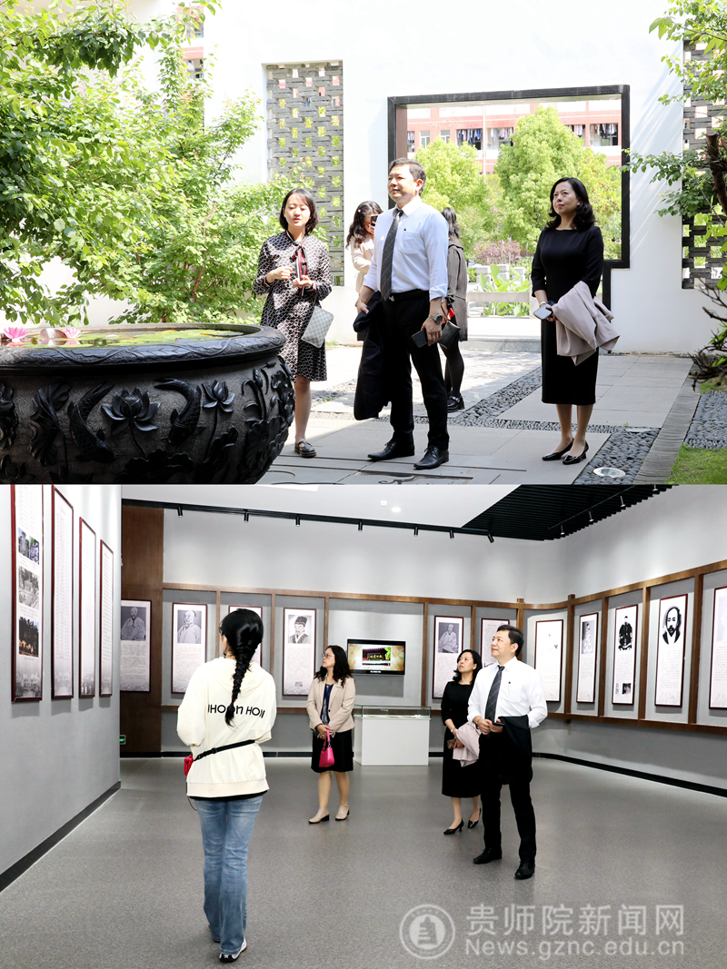 对外交流合作处、历史与档案学院有关负责人陪同台湾客人参观了pp电子的贵州教育史馆、印山书院等学校特色考察点。