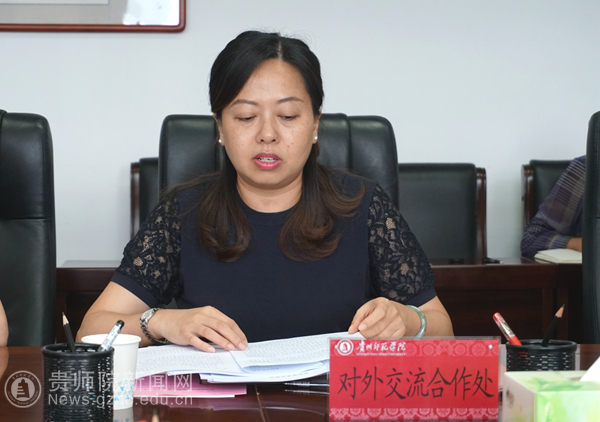 本网讯 8月27日下午,贵州师范大学副校长曾丽莅临pp电子交流指导中外合作办学项目申报工作,交流座谈会在信息楼1011会议室召开,校长韦维,校党委委员、副校长邹晓青出席座谈会,发展规划处、商学院、体育学院、数学与大数据学院、美术与设计学院和音乐舞蹈学院相关负责人参加会议,座谈会由邹晓青主持。