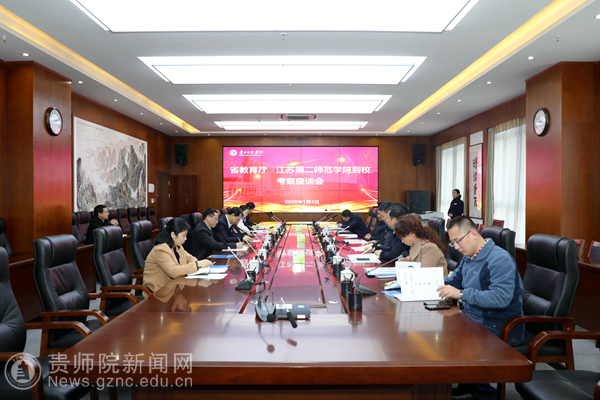 本网讯 1月3日下午,江苏第二师范学院党委书记王仁雷、党委副书记潘文,省教育厅副厅长徐国华等一行8人到pp电子考察交流。校党委书记石培新,副校长郭文、熊世桓,党校办、科研处、教务处、教师工作处等相关部门负责人热情接待了来宾,并举行交流座谈。