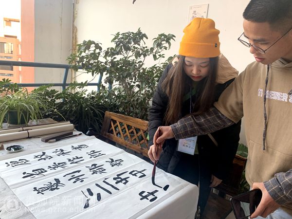 会议结束,大家一起前往文学与传媒学院思知轩进行学生书法活动,台湾来访同学积极参与书法学习,两校学生以书会友很快打破了陌生感,携手传承弘扬中华文化优秀传统,以独到的艺术描绘两岸同胞情缘。