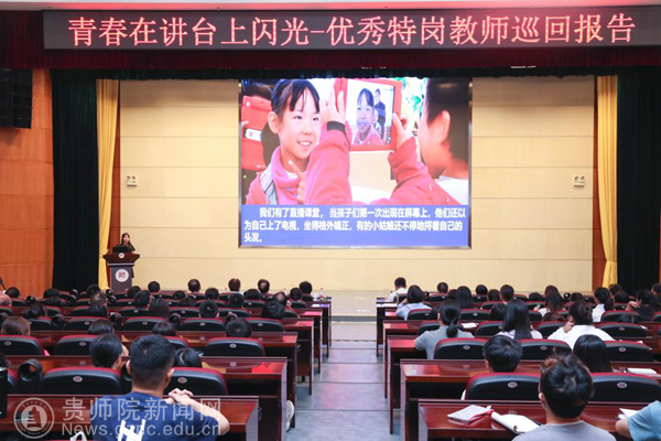 本网讯 9月6日上午,教育部教师工作司组织的“青春在讲台上闪光——2019年优秀特岗教师全国巡回报告会”在贵州师范大学花溪校区学术报告厅举行。pp电子50名师生代表在教师工作处副处长王茜的带领下参加了报告会。教育部教师工作司巡视员刘建同、教育部教师工作司干部钱程,省教育厅副巡视员龚宁,及师大校领导出席报告会,在筑各兄弟师范院校的师生代表400余人共同聆听了这场感人至深的报告。
