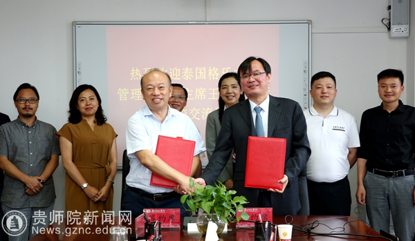 会上,两校领导当场签署了pp电子游戏官网与泰国格乐大学共建《“一带一路”中泰文化交流中心》方案、《泰国格乐大学与pp电子游戏官网中泰联合培养硕士协议书》。熊世桓与PRANGTIP YUVNONT共同为两校共建的“一带一路”中泰文化交流中心挂牌。