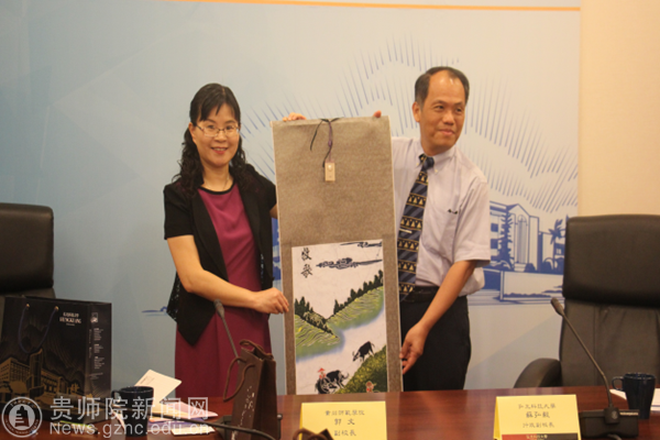 郭文与弘光科技大学副校长苏弘毅互赠礼品