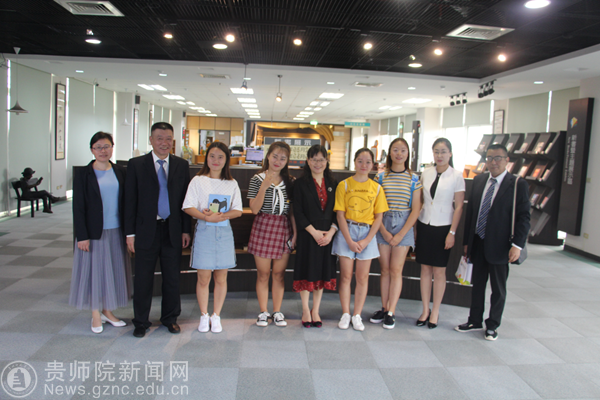 考察组在屏东大学图书馆与交换生合影