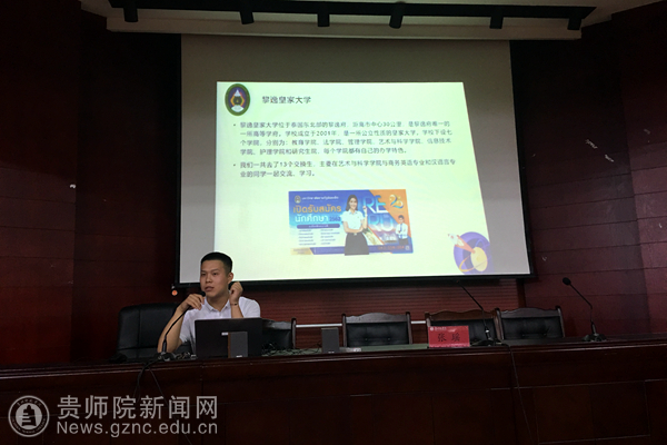 赴泰国姊妹学校泰国黎逸皇家大学短期交流的文传学院高显凯、地资学院李鑫分享了在泰国短期交流的心得体会,虽然时间不长,但对方学校领导、老师以及同学的热情周到让他们感动不已,除了学习,还收获了满满的友谊。为了记录这一段珍贵的经历,学生还制作了一段精美的视频进行现场播放。