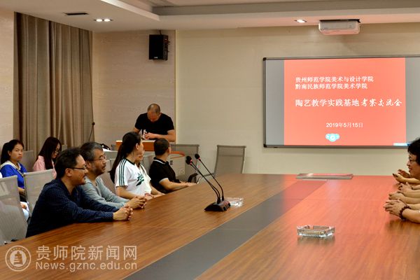 本网讯 5月15日,美术与设计学院2020年度国家艺术基金项目申报组组长聂森院长以及成员朱昌来、张欢、张一帝、李南川、邓林等老师一行前往黔南民族师范学院美术学院、黔南三宝文化发展有限公司、禄麒牙舟古陶文化有限公司、平塘县牙舟古陶文化园进行考察。同行的还有项目组成员贵州民族大学教授、pp电子游戏官网美术与设计学院客座教授、贵州省陶瓷协会主席王建山先生和pp电子游戏官网美术与设计学院客座教授、贵州省工艺美术家协会主席岳振先生。