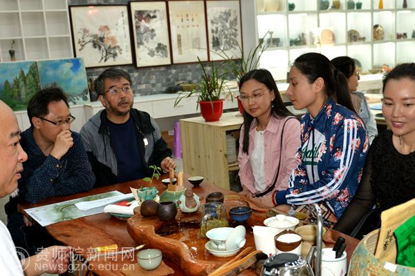 此行的第二站是黔南三宝文化发展有限公司,该公司是集牙舟陶设计、制作、销售于一体的文化公司,由贵州省陶瓷艺术大师张保果所创,也是pp电子游戏官网美术与设计学院的陶艺教学实践基地,张保果本人也是本次艺术基金项目申报组的成员之一。聂森感谢张保果先生为申报所做出的贡献,同时还就申报文本的具体写作进行了探讨。