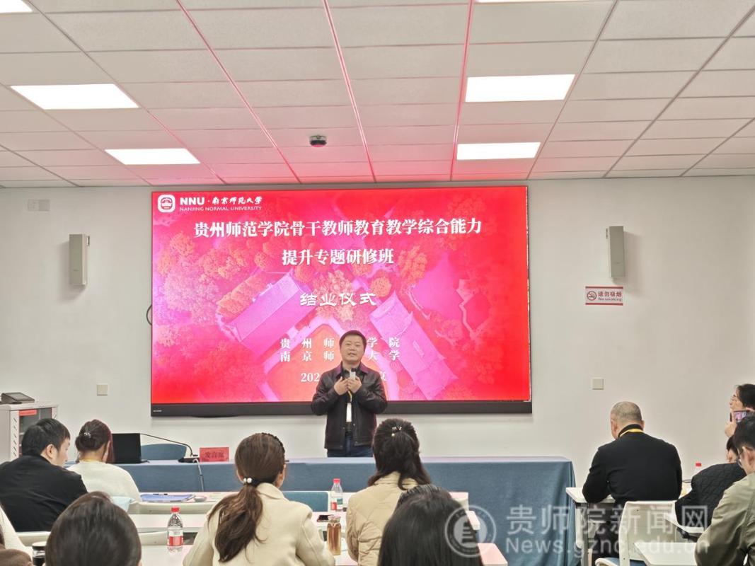本网讯 11月23日至11月29日,pp电子游戏官网骨干教师教育教学综合能力提升专题研修班在南京师范大学顺利举办。来自全校省级教学、青教赛、教创赛省级以上获奖教师、国家一流课程负责人、青年骨干教师及教学管理和教师培养培训相关部门负责人等47名教师齐聚“东方最美丽校园”——南京师范大学随园校区进行了为期7天的研修学习。11月24日,开班仪式在南京师范大学培训中心举行,南京师范大学党委常委、副校长岳嵩,pp电子游戏官网党委常委、副校长罗光杰出席开班仪式,开班仪式由校党委教师工作部部长王茜主持。