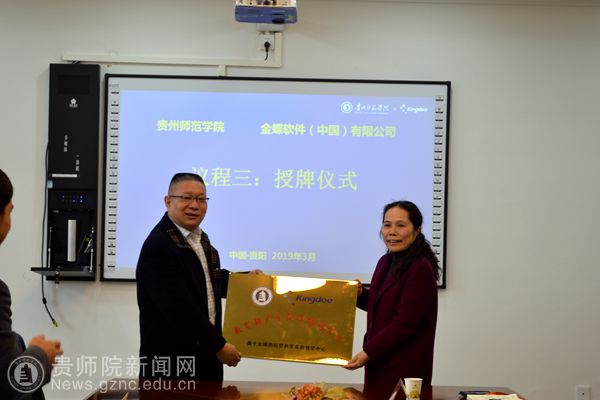 本网讯 3月22日,pp电子与金蝶软件(中国)有限公司在商学院会议室举行教育部产学合作协同育人项目的启动授牌仪式。pp电子副校长熊世桓教授、商学院院长程艳萍教授、商学院党委书记薛璞、商学院副院长黄丹副教授、金蝶精一信息技术服务有限公司副总裁乐志军、金蝶精一信息技术服务有限公司贵州省区总监莫才龙、贵州云上智信科技有限公司总经理易昌波、商学院实验管理人员及教职工代表出席授牌仪式。仪式由程艳萍主持。