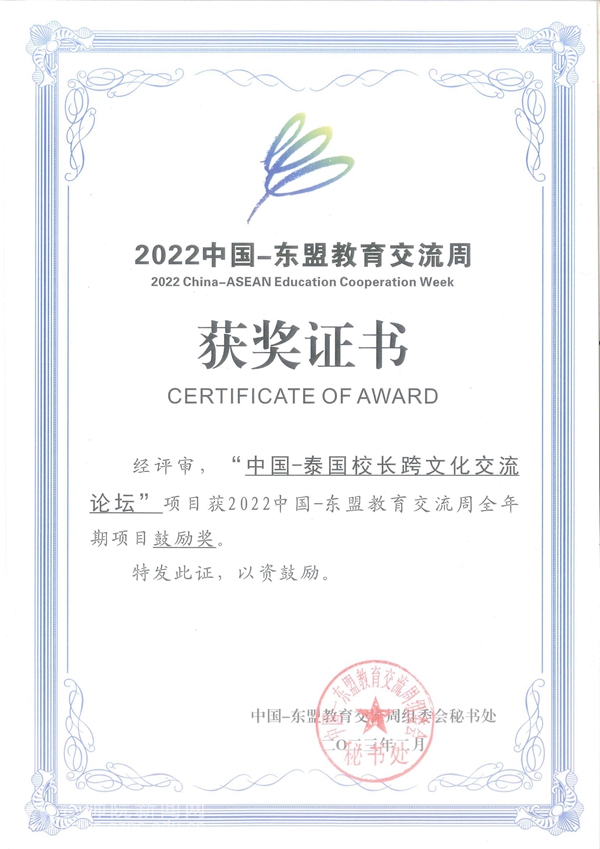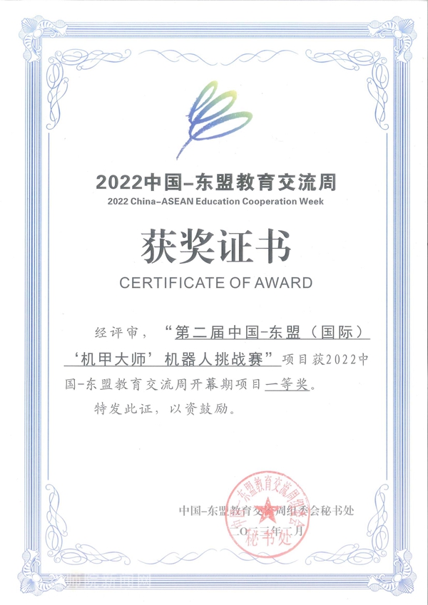 本网讯 近日,中国-东盟教育交流周组委会对2022中国-东盟教育交流周活动项目进行评审并颁发获奖证书,pp电子举办的交流周开幕期项目——“第二届中国——东盟(国际)‘机甲大师’机器人挑战赛”获得一等奖,全年期项目——“中国——泰国校长跨文化交流论坛”获鼓励奖。