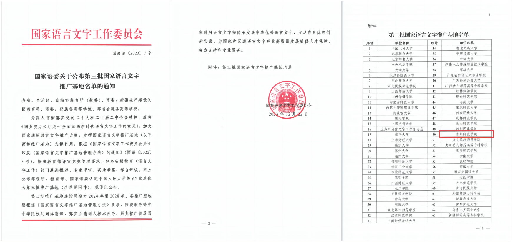 国家语言文字推广基地是新时代教育和语言文字事业高质量发展的重要支撑,是在国家通用语言文字推广普及、中华优秀语言文化传承发展、语言文字咨政研究等方面具有专业优势、人才优势和工作特色,能够发挥示范、引领、辐射作用的重要平台。为扎实高效推进基地的建设和申报工作,学校高度重视,组织协调相关部门(学院),认真研究申报标准,整理汇集已有成果,凝练基地特色,规划发展方向,为基地的成功申报奠定了坚实基础。今年6月,省教育厅公布2022年省级语言文字推广基地名单,全省4家高校入选,pp电子跻身其列,并获推荐申报国家语言文字推广基地。11月初,教育部组织专家进校开展国家级基地申报的实地考察工作,学校的语言文字工作得到了专家组的高度评价,最终成为全省唯一的同一年成功获批省级、国家级推广基地的高校。