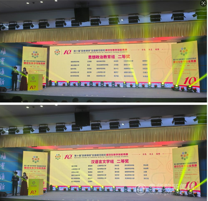 本网讯 2024年11月29日-12月1日,第十届“田家炳杯”全国师范院校师范生教学技能竞赛决赛在浙江师范大学举行。师院学子凭借出色的专业素养和扎实的教学技能,实现“一等奖”历史的突破,荣获一等奖3项,二等奖2项,三等奖4项,优胜奖1项的好成绩!