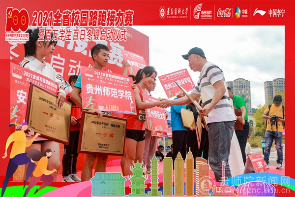 本网讯 9月23日,2021年全省教育系统校园路跑接力赛暨百万学生百日冬锻启动仪式在遵义医科大学激情开展。本次比赛是由省教育厅主办、遵义医科大学承办、省学生体育协会协办。比赛设有高中组、教职工组、大学丙组、大学乙组和大学甲组五个组别,赛程共3.3公里。本次校园路跑接力赛是在疫情防控常态化形势下举办的全省学校群众性体育活动,师生同场竞技展现了校园体育氛围,本次赛事吸引了省内教育系统75支代表队600多名运动员参赛。