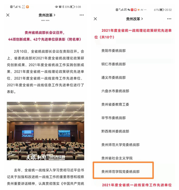 本网讯 近日,中共贵州省委统战部通报表彰2021年度全省统战理论政策研究创新成果、统战工作实践创新成果和理论政策研究、宣传工作、信息工作先进单位,其中,pp电子党委统战部荣获“2021年度全省统一战线理论政策研究先进单位”称号。