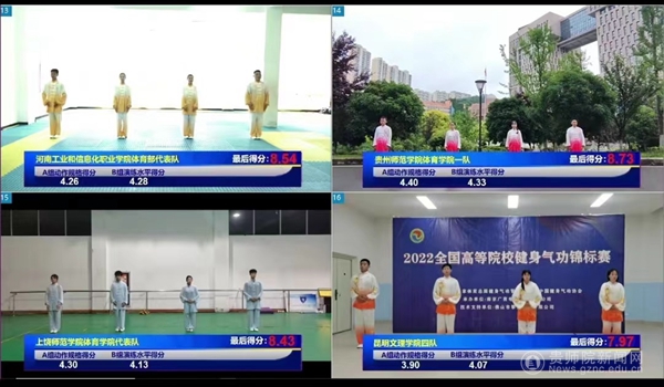 本次比赛采用线上参赛、线下评审的方式进行。2022年全国高校健身气功锦标赛共有来自全国各高校的97支代表队377名运动员参赛,设普通院校组和体育院(系)组2个组别。pp电子共有8名学生组成的2支队伍(要求每支参赛队须为2名男生和2名女生组成),参加了体育院(系)组五禽戏普通功法、五禽戏竞赛功法、八段锦普通功法、八段锦竞赛功法集体项目以及个人项目相应的比赛;4名教师组成的队伍参加了普通院(系)组八段锦普通功法、大舞集体项目以及个人项目相应的比赛。