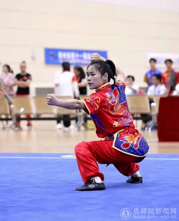 本网讯 2022年7月10日—13日,贵州省第十一届运动会武术比赛在六盘水市凉都体育中心举行,pp电子体育学院2018级体育教育专业学生高梦代表贵阳市参赛。经过四天激烈角逐,共获个人女子刀术第一名、女子棍子第一名、女子对练第一名、女子长拳第二名和个人全能第二名的好成绩。这是pp电子学子首次参加省级武术大赛,为贵阳市代表队获得荣誉的同时,也充分展示了pp电子学子的精神风貌和体育精神。
