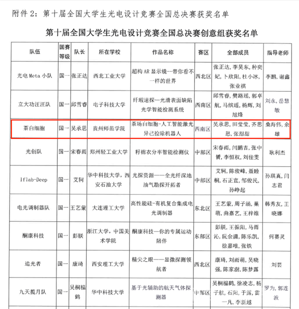 第十届全国大学生光电设计竞赛全国总决赛获奖名单