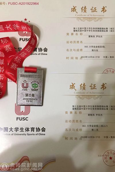 教育部学生体育协会联合秘书处副秘书长张爱龙,贵州省教育厅副厅长黄健、贵州财经大学校长刘雷,贵州省教育厅体育卫生与艺术教育处处长胡锐等领导出席开幕式。本届比赛共设大学生专业A组、B组、大学生业余组、大学生交谊舞组、中专专业组等共计142个项目,每个组别分别取前八名,进入半决赛选手将获得2020年5月在昆明举行的总决赛资格。此次大赛由领导支持同意,教练员董涛、刘晓燕带队,通过半年的训练,对双人组合的反复打磨,秉着不服输的师院精神,也为了推动贵州省大学生体育舞蹈事业的发展,pp电子选手蒙海浪、罗钰杰通过每个组的预赛、半决赛、复活赛、决赛的层层突围最终取得了佳绩并拿下参加总决赛的资格。师院DT体育舞蹈队将不忘初心,则未来可期,愿为校争光。