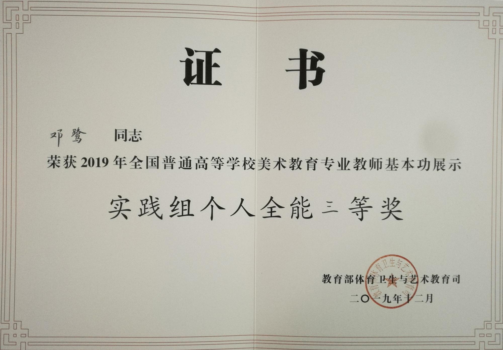 本网讯 日前,教育部公布了2019年全国高校音乐美术教育专业教师基本功展示评选结果,贵州省共获得6个奖项,其中美术类2个、音乐类4个。pp电子教师共获得其中4个奖项:美术与设计学院邓鹭教师在美术专业教师基本展示中获得个人全能奖实践组三等奖、个人单项奖实践组经典作品赏析单项奖;音乐与舞蹈学院王铎老师在音乐专业师基本展示中获得个人全能奖教法组三等奖、个人单项奖教法组专业展示单项奖。