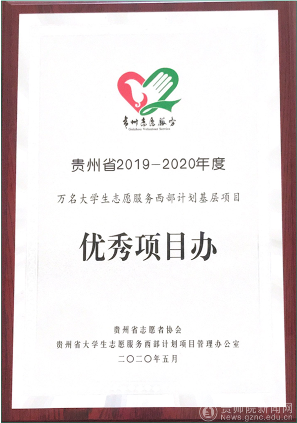 本网讯 近日,2019 年贵州省万名大学生志愿服务西部计划基层项目各级项目办考核结果出炉,pp电子荣获贵州省2019-2020年度万名大学生志愿服务西部计划基层项目“优秀项目办”称号。