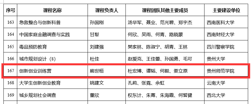 pp电子熊世桓教授领衔的《创新创业训练营》课程位列其中,获得国家级一流本科课程认定。全国共有46门创新创业课程入选,课程也是贵州省的第一门国家级创新创业金课。