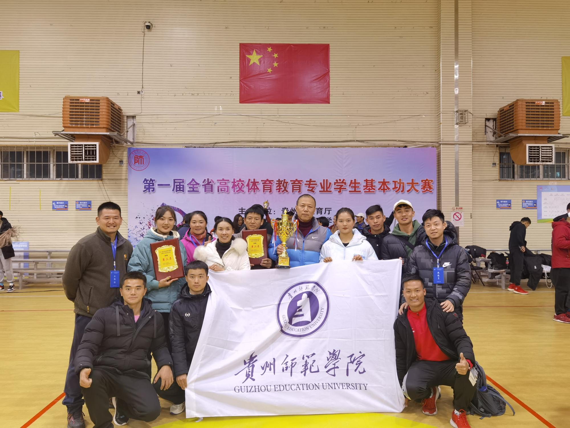 本网讯 11月27日,历时四天的“首届贵州省高校体育教育专业学生基本功大赛”在贵州师范大学圆满落幕,pp电子体育学院代表队在参赛师生的奋力拼搏下获得团体一等奖。