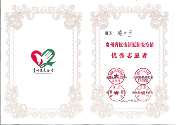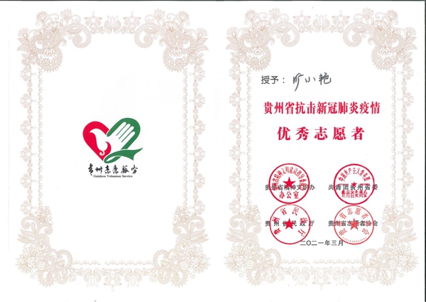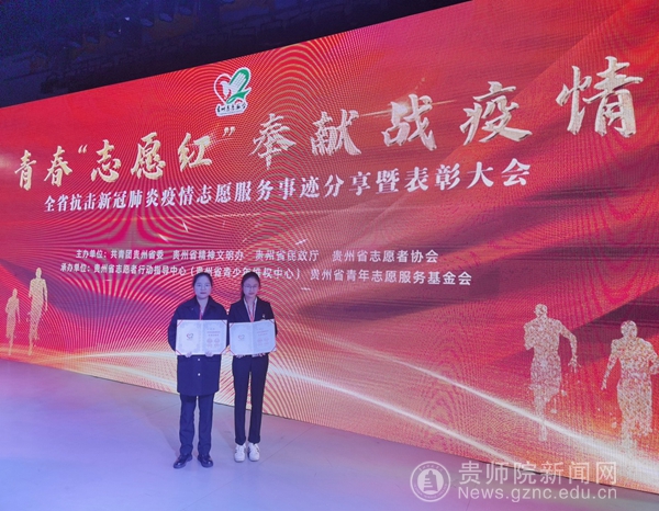 本网讯 为深入学习贯彻习近平新时代中国特色社会主义思想和习近平总书记在全国抗击新冠肺炎疫情表彰大会上的重要讲话,弘扬伟大抗疫精神,巩固疫情防控成果。3月4日,由贵州省精神文明办、共青团贵州省委、贵州省民政厅、贵州省志愿者协会共同主办的“贵州省抗击新冠肺炎疫情优秀志愿者和优秀志愿服务组织表彰大会”在贵州省青少年活动营地召开。pp电子生物科学学院学生周小可、外国语学院学生旷小艳参加表彰大会,并荣获“优秀志愿者”殊荣。