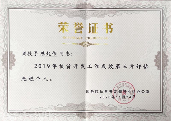 同时,陈起伟教授作为贵州省贫困县退出专项检查专家组副组长。近年来,根据贵州省扶贫办工作安排,陈起伟教授作为技术总负责人,带领团队深入我省9个地州市60余个县市区调研、检查、评估我省各地精准扶贫工作情况,形成多份专题调研报告供省领导及相关部门进行决策参考,为我省高质量打赢脱贫攻坚战提供了科技供给。