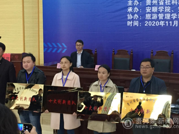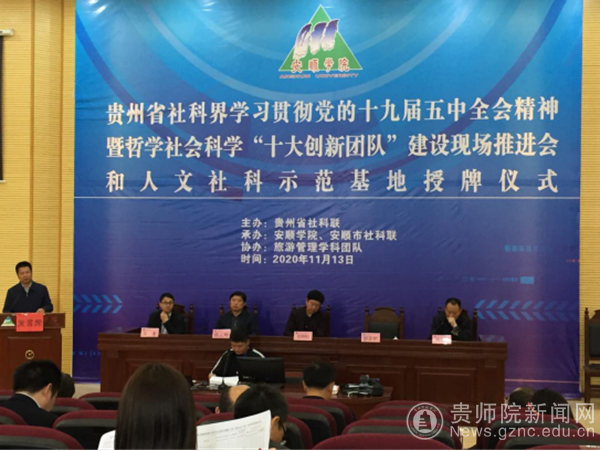 本网讯 11月13日,pp电子美术与设计学院学科建设办公室主任张欢教授、杨钢副教授作为pp电子贵州省哲学社会科学“十大创新团队”的核心成员,赴安顺学院参加贵州省社科界学习贯彻党的十九届五中全会精神暨哲学社会科学“十大创新团队”建设现场推进会和人文社科示范基地授牌仪式。pp电子美术与设计学院申报的“民族工艺设计智慧与文旅融合研究团队”经过专家的评审、现场答辩等程序,在全省申报的五十余个团队中脱颖而出,被省社科联授予贵州哲学社会科学“十大创新团队”称号,并在会上进行了授牌。