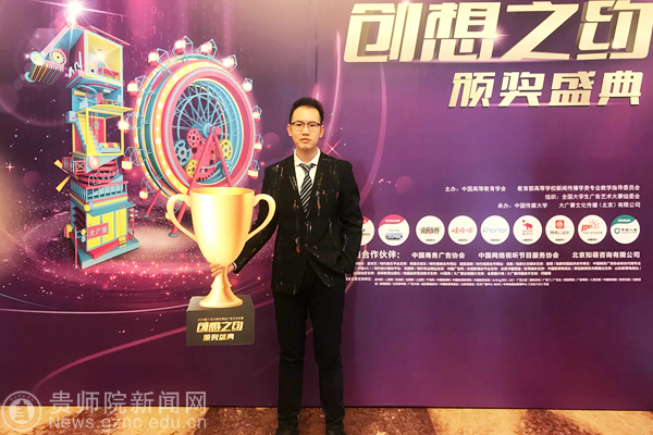 第十届大广赛主题口号为“创意我闪耀”,共有1449所高校参赛,经校级初选后,共收到作品251656组(约50万件)。经过三个月的省级评选、全国评审、网上公示,最终产生全国一等奖108组、二等奖329组、三等奖824组、优秀奖2835组。据初步统计:pp电子文传学院在本次大赛中获得全国二等奖1项、三等奖2项、优秀奖9项。获贵州省赛区一等奖9项、二等奖14项、三等奖22项、优秀奖32项。其中新媒体类获奖比例为93%、广播类获奖比例为92%、视频类获奖比例为75%、微电影类获奖比例为67%。pp电子文传学院16级赵伟韬同学主创的视频类影视广告作品《现在就出发》(指导老师:娄立原)更斩获全国级二等奖,赵伟韬同学作为获奖代表上台领取了获奖证书和奖品。