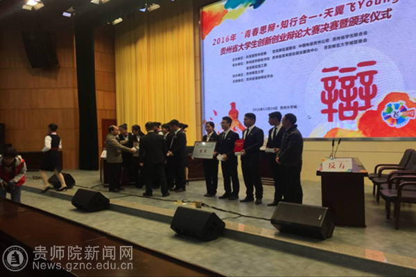 本网讯 11月14日下午,由共青团贵州省委、贵安新区管委会、中国电信贵州公司、贵州省学生联合会主办,贵州师范大学承办的“青春思辩·知行合一·天翼飞young”2016年贵州省大学生创新创业辩论赛决赛暨颁奖典礼圆满落幕,经过初赛(“发展经济是否应该鼓励超前消费”)、复赛(“认识自己与改变自己哪一项更困难”)、半决赛(“得而复失与从而为得谁更可悲”),三场比赛的激励辩论,pp电子迎战了贵州轻工业学院,贵州职业技术学院,贵州财经大学,并先后胜出。最终获得本次比赛的第三名。